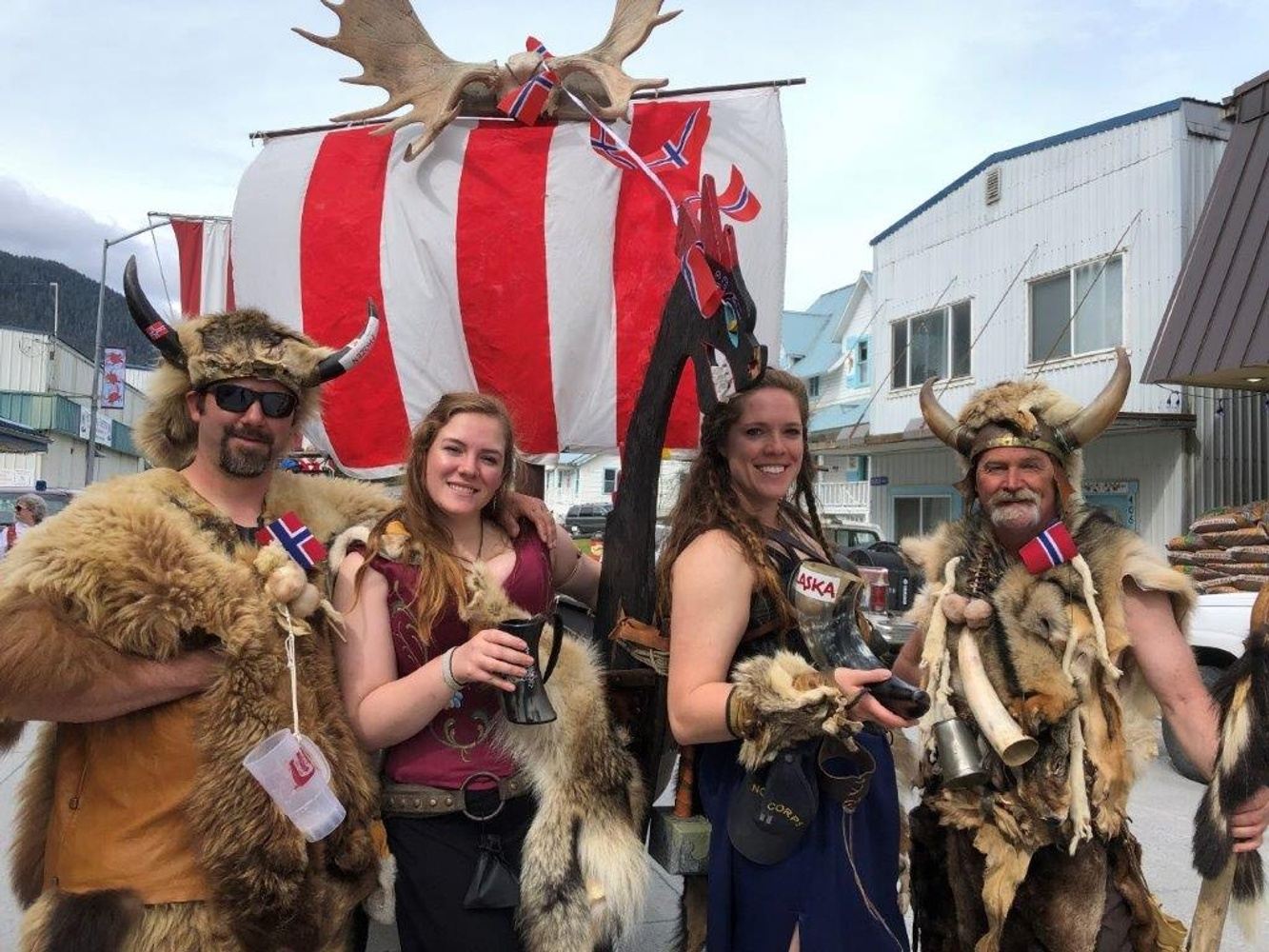 The boat will head back to Petersburg for the Little Norway Festival! Residents and visitors, young and old alike, dressed in Norwegian bunads (folk costumes) partake in the festival events with the Vikings and Valkeries. The first event starts at noon for the Scandinavian Style Show and Luncheon to learn about the heritage and Norwegian history of Petersburg. Following are the street games, Parade, Viking Shrimp Feed, a local play, and live music.