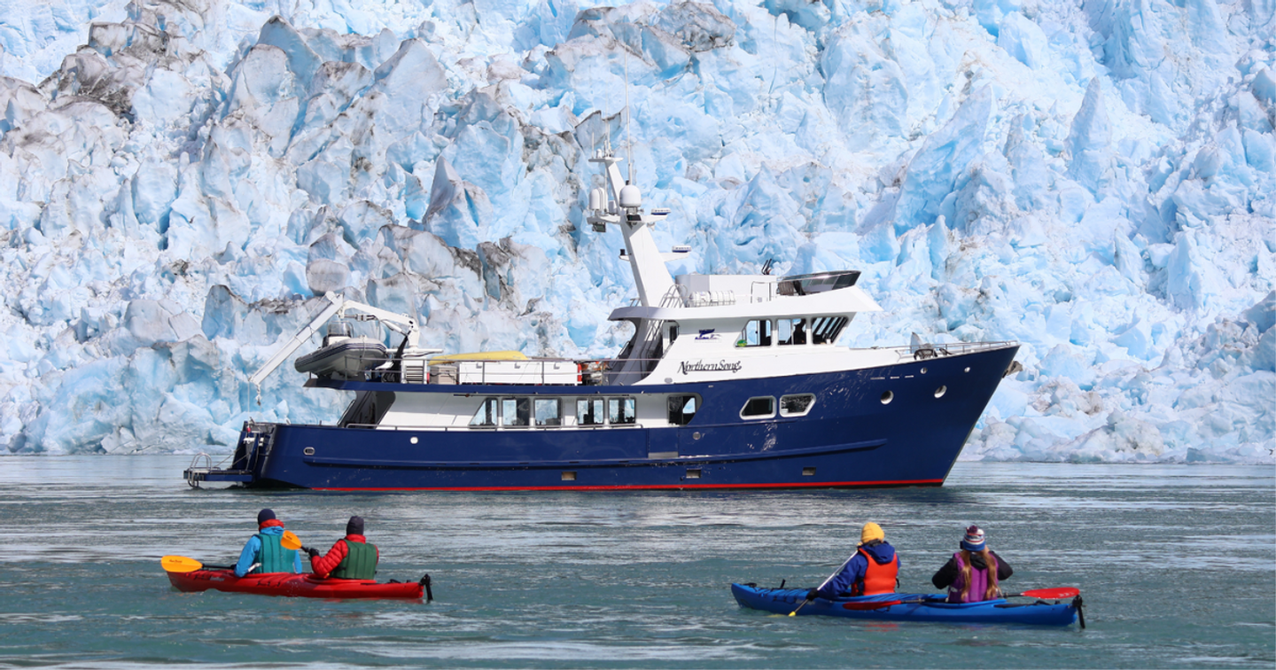 Sea kayaks are available for excursions in the bays and near the glaciers.