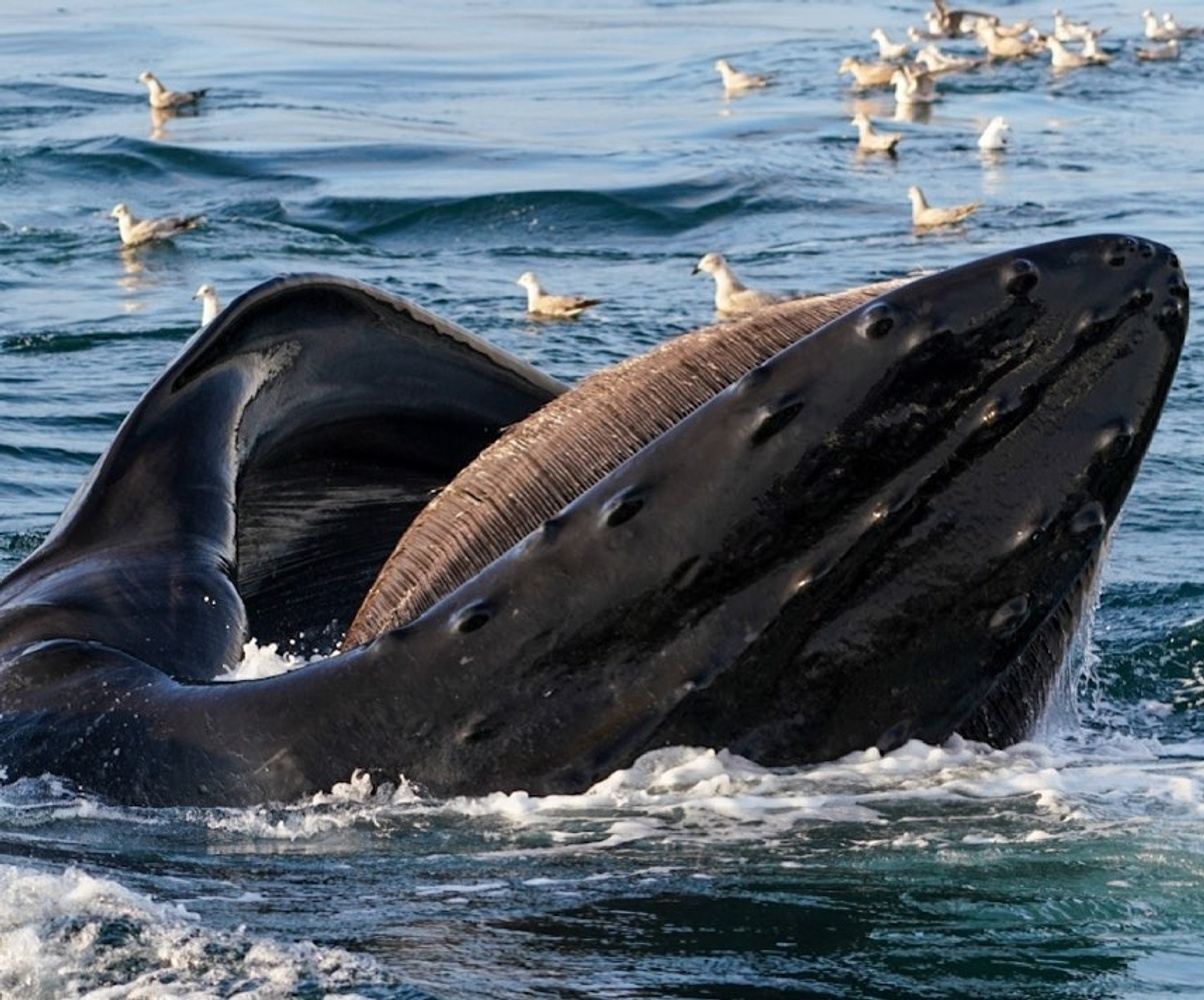 We have a hydrophone we put in the water to listen to the whales and then we can gauge when they will surface or bubble feed.